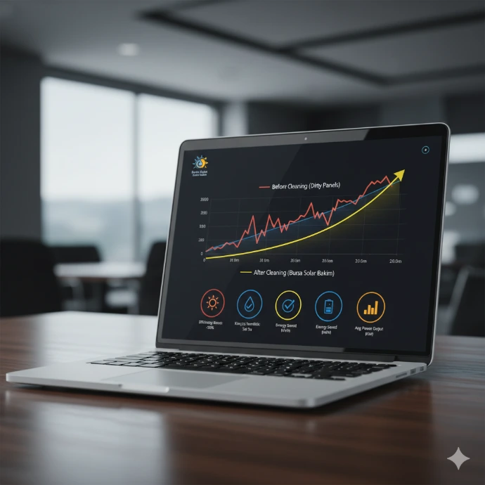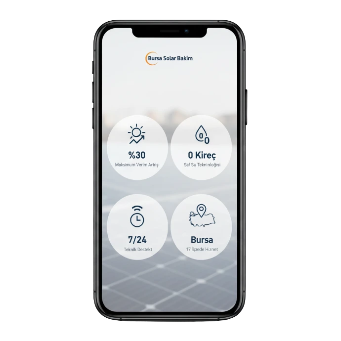 Bursa Solar Bakım olarak, sadece temizlik yapmıyoruz; güneş enerjisi yatırımınızın performansını dijital olarak analiz ediyoruz. Bursa'nın endüstriyel hava koşulları ve mevsimsel tozlanma oranlarını dikkate alarak, tesisinize özel verimlilik haritaları çıkarıyoruz.